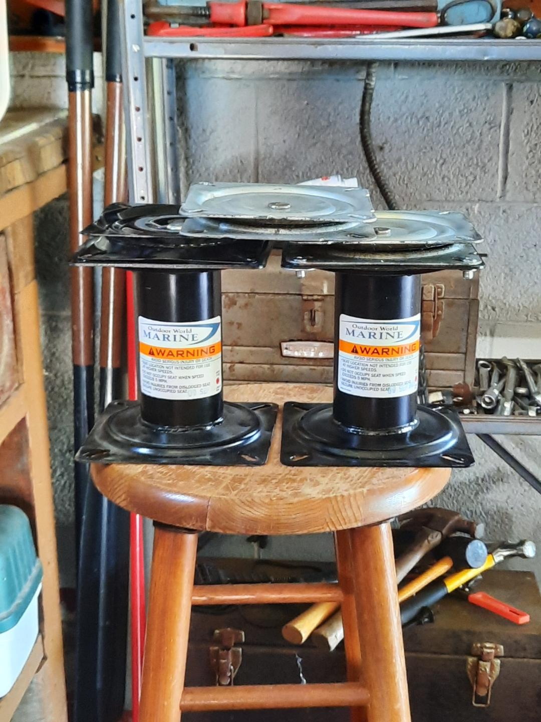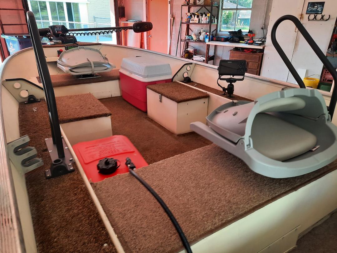Finally got the new/old Sea Nymph on the water Saturday. My 1/2 brother was in town and he's about the same weight as the wife, so he met me at Smith Park, and we put the boat through some paces. She launched and floated fine, is initially stable, ran fast and strong with the new flotation pods on each side of the 25 Yamie 4 stroke. One thing that became immediately concerning though was that the 7-inch-tall pedestals I had bought and installed on the back seat and right-side storage box to keep me from setting too low for my knees comfort's sake. These were not totally to my liking and were not going to work well enough when either setting still or motoring along in any kind of waves. They were comfortable enough alright, but for a guy my size, they moved the boats balanced pivot point Axium too high in a boat this size making it slightly unstable. So back to plan A with the lower 2 original sliding swivel seat plates front and back that the boat came with, hoping the grab bars I installed will be enough and placed strategically enough to add needed support to stand and move around. Next trip will tell. But for now, I have 2 7"-inch pedestal stands, 3 swivel seat plates and 1 brand new BP folding seat for sale. These would work great on a slightly bigger/wider boat or in one that the operator is smaller/more agile than I am.